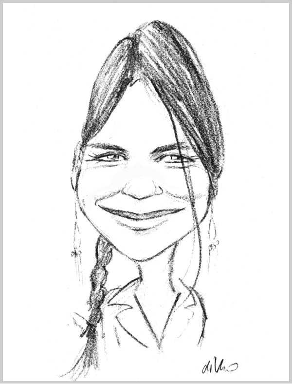 Die klassische Zeichnung mit schwarzem Stift auf Papier. Sehr hohe Ähnlichkeit Für jede Art von Events geeignet Ideal zum „über die Schulter gucken“ und bei kleinen Räumlichkeiten. Zeichendauer ja nach Modell ca. 4 – 5 Minuten. Bilder in DIN A3 - kann mit Firmenlogo bedruckt werden. Papier wird als Rolle übergeben, kann aber auch an eine Pinwand geheftet werden, sodass eine kleine Galerie entsteht.